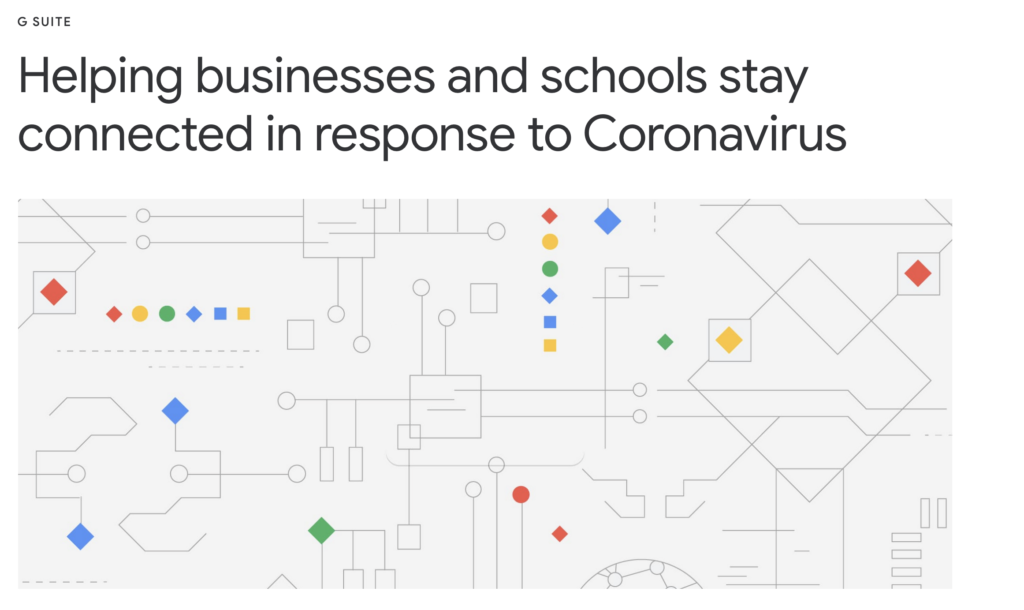 Google is offering more such work from home and education from home tools at no additional costs starting with their G suite and G Suite for Education, followed by Hangouts Meet a web conferencing application, and Google classrooms to continue schooling from home.